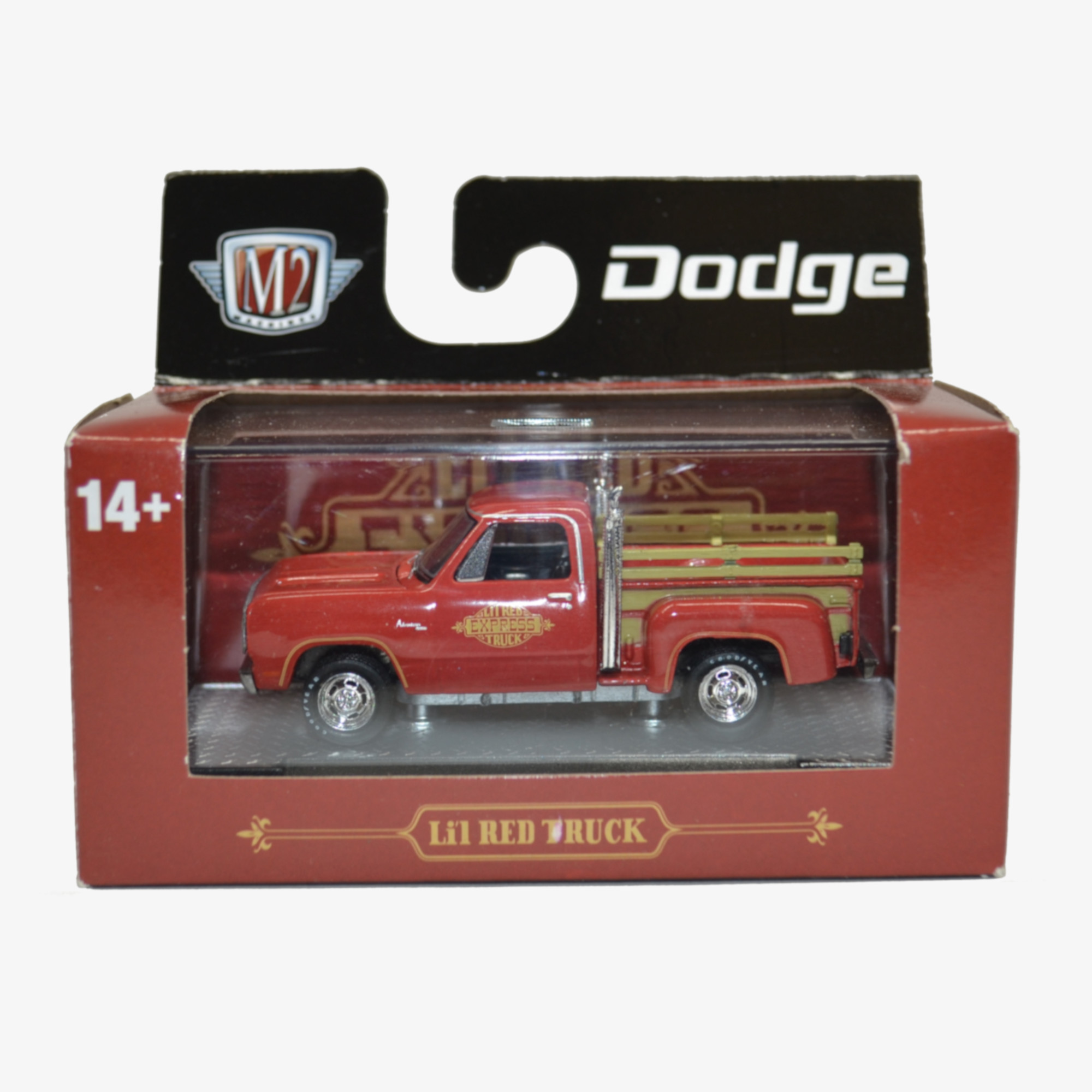This 1978 Dodge Adventurer model offers a unique collectible. It is a 1:64 scale die-cast model from M2 Machines, representing a red 1978 Dodge Adventurer 150 Li’l Red Express Truck. This model, which measures about 3″ long, features chrome bumpers and wheels (choose from silver or metallic green detailing). Someone donated this model new in its original box, which shows mild wear from storage.