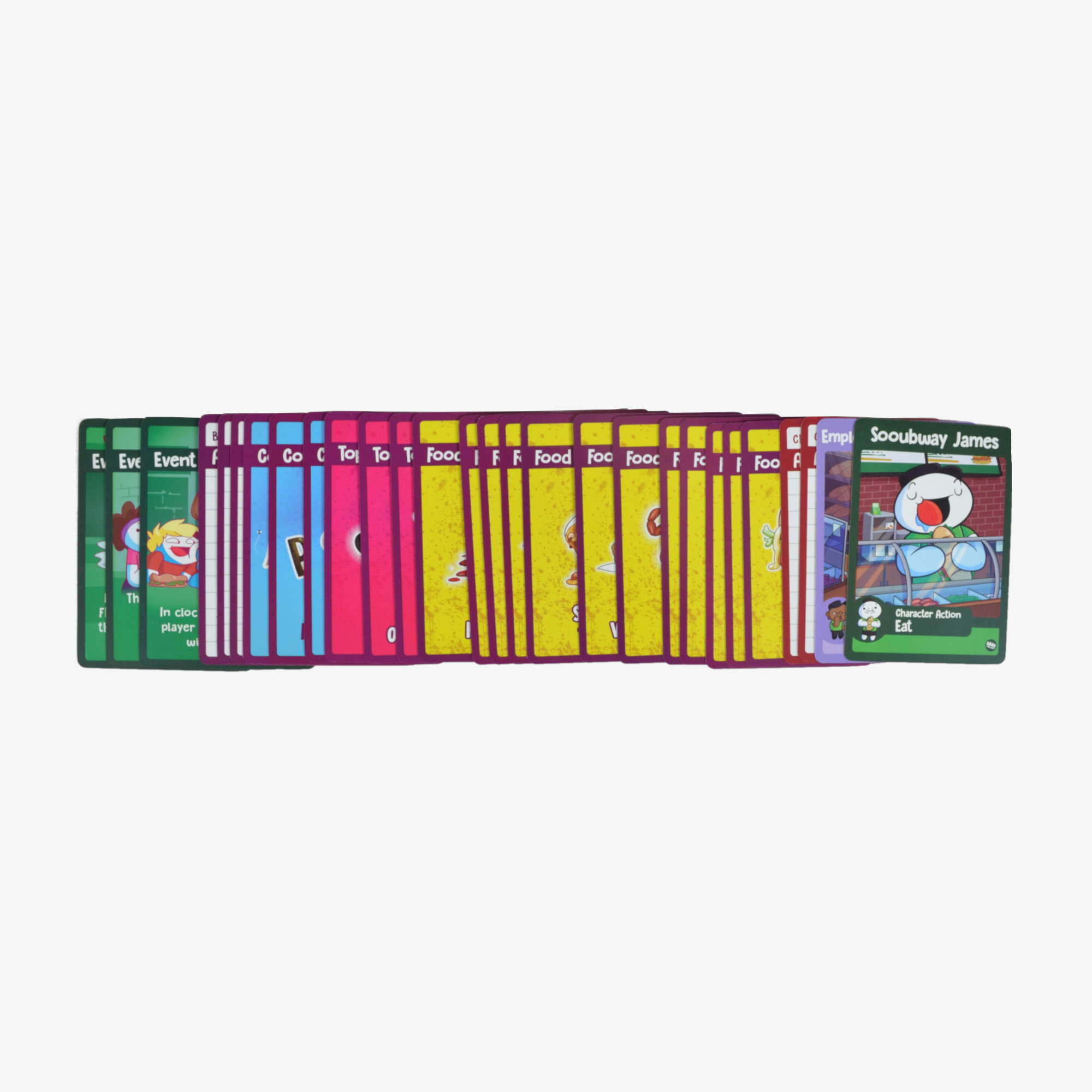 The Sooubway packs introduce several new characters and actions into your chaotic cafeteria food fight. You can play with special character cards like Sooubway James or the Employee of the Month. The set also includes useful action cards like Eat and Snitch to help you beat your opponents. Furthermore, you will find bonus action cards like Taunt, Confuse, and Copy to change your strategy. These new cards allow you to interact with other players in funny and unexpected ways. The strategic nature of the game remains simple enough for groups of three to eight players. You will enjoy using these unique powers to avoid getting splattered with food.