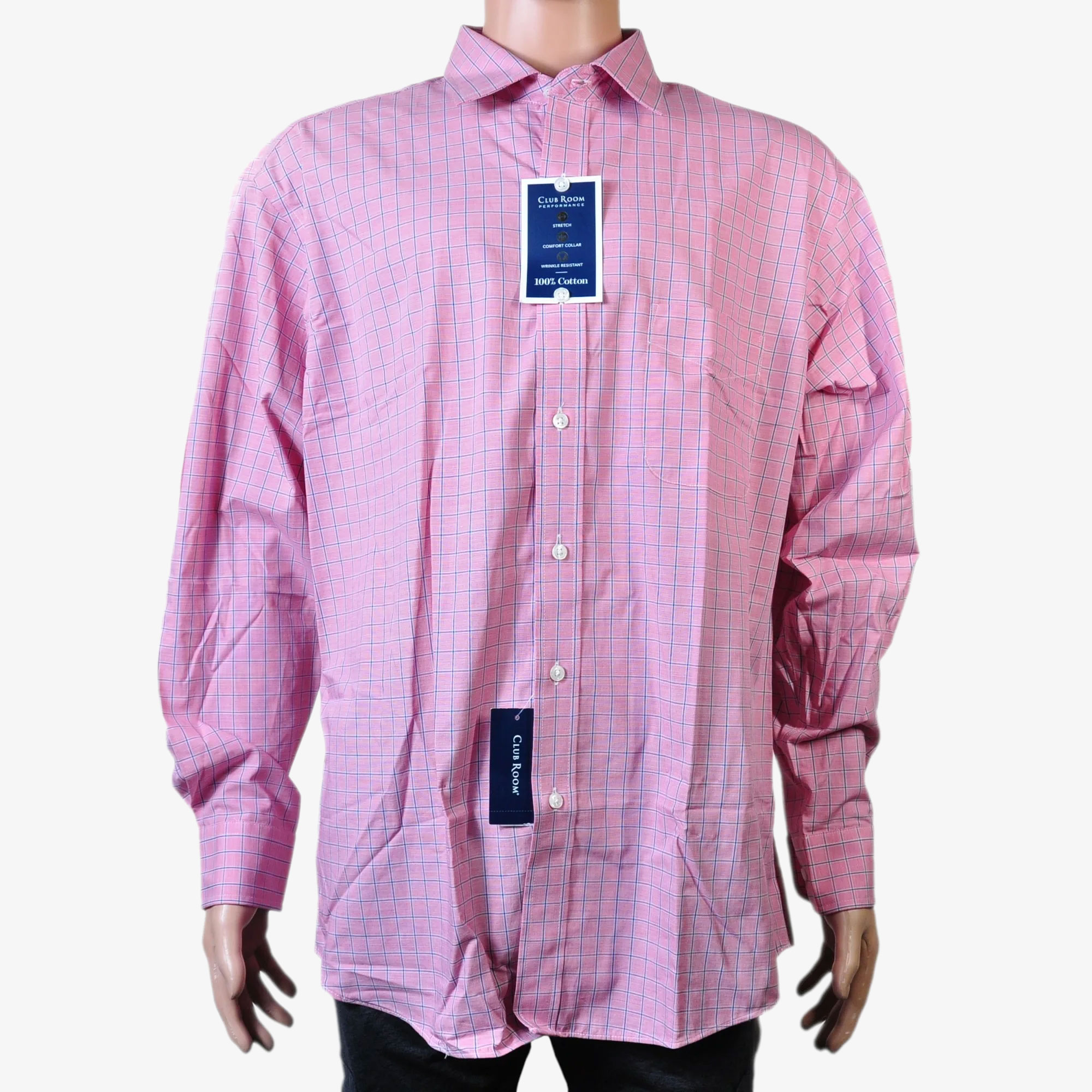 CLUB ROOM Long-sleeve Dress Shirt, Pink Plaid, L