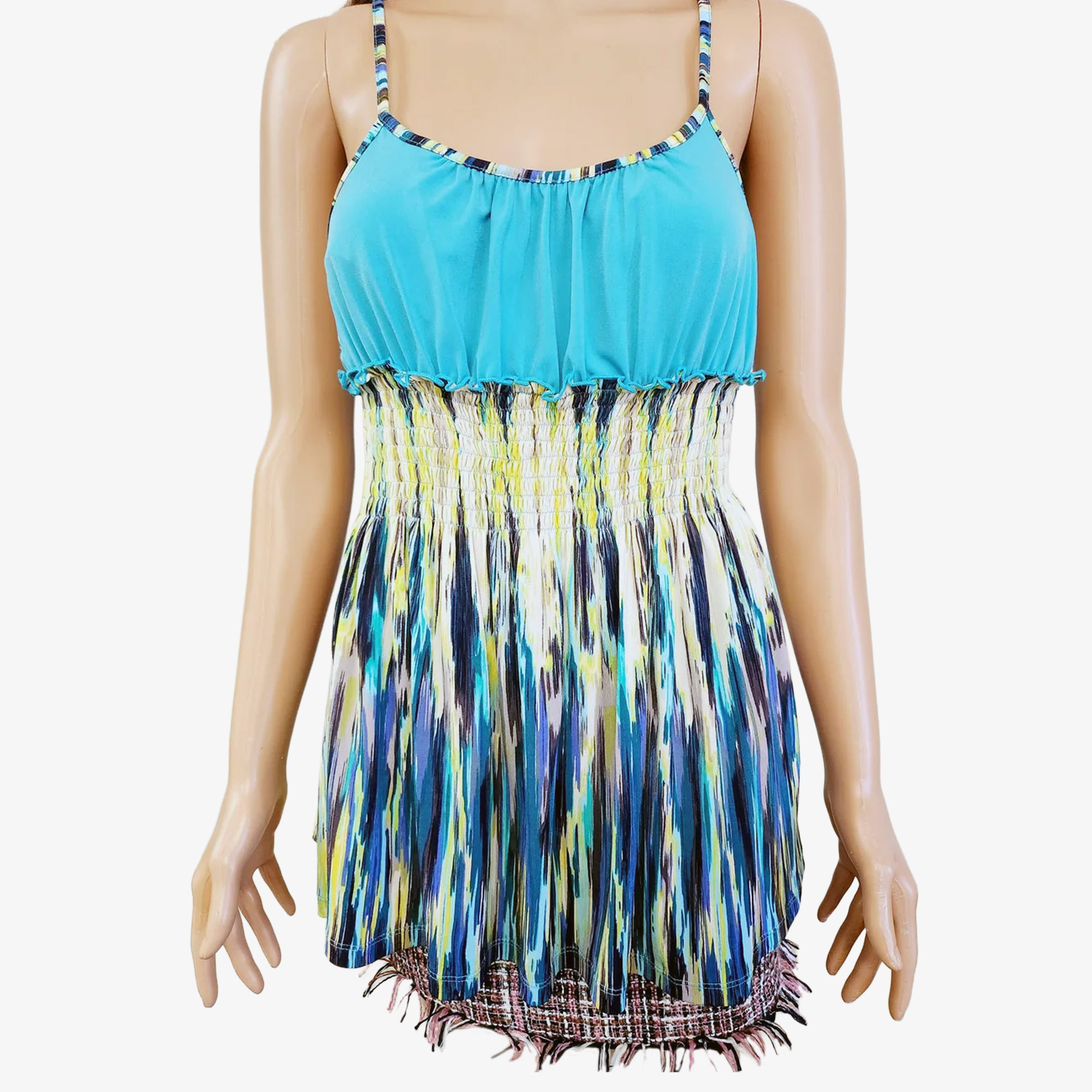 This JONATHAN MARTIN Multicolored Tank Top offers a fun and vibrant aesthetic that instantly elevates your casual wardrobe. The sleeveless construction features an eye-catching pattern that makes it perfect for brunch with the girls. Furthermore, the colorful palette ensures you stand out while maintaining a relaxed, approachable silhouette in the San Diego sun. Consequently, this piece transitions perfectly from a morning coffee date to a sunny afternoon at the park. Because we typically only have one in stock, you should act quickly to secure this find.