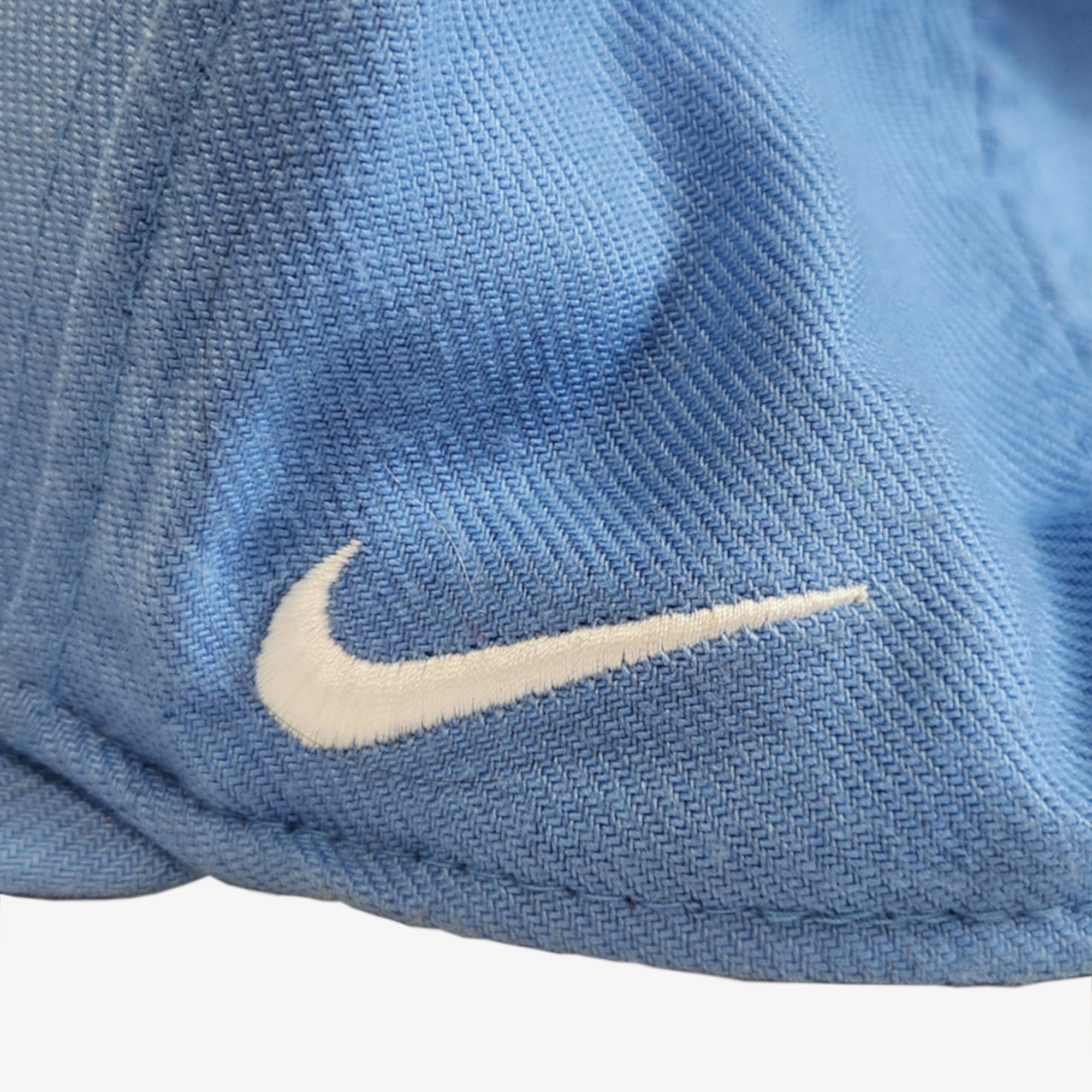 This Nike Classic99 cap is a size M/L. As a nonadjustable cap, it fits most adults. It features an authentic North Carolina Tar Heels logo. The cap’s undervisor has a contrast color. This item is made from 100% polyester. Therefore, you can easily clean its surface. Someone donated this cap new, but it has mild scuffs and marks from storage. Nonetheless, it would still make a great gift.