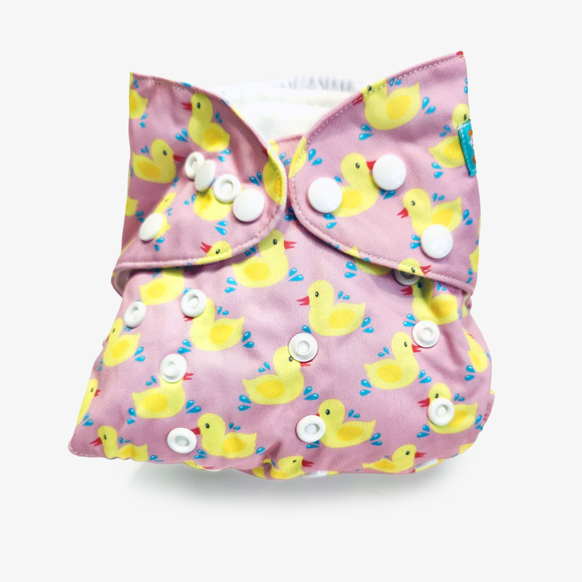 Pocket Cloth Diaper by ALVABABY, Pink with Yellow Ducks
