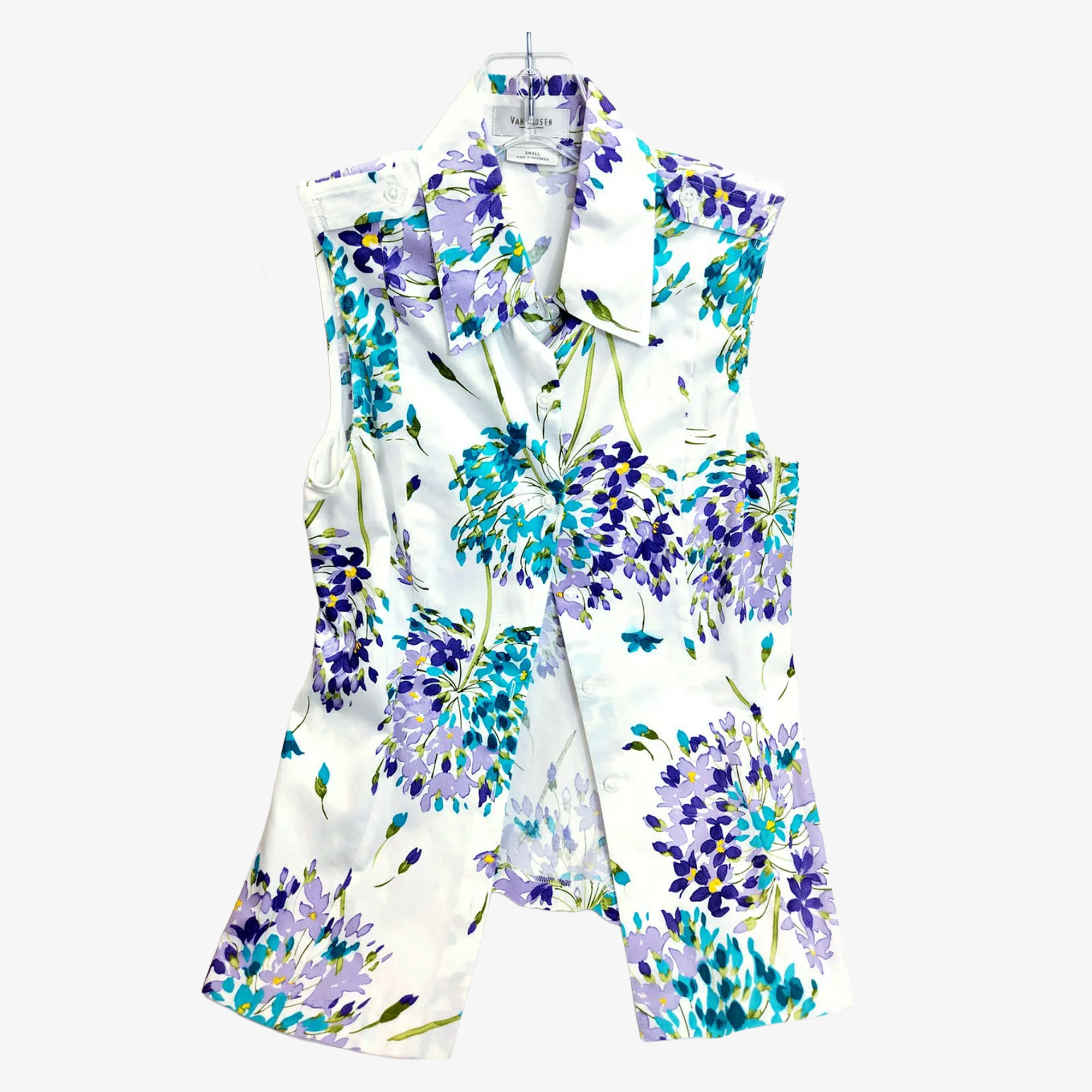 VAN HEUSEN Sleeveless Shirt: Purple and Blue Floral Tank Top