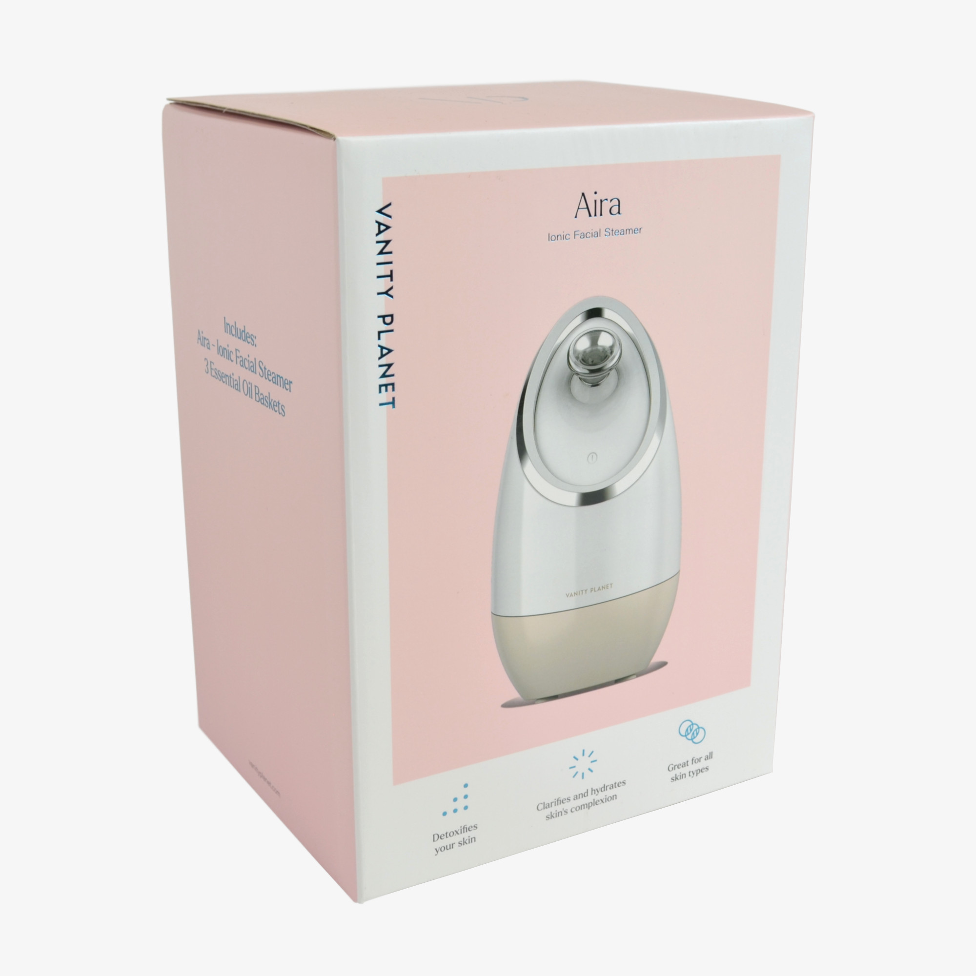 The Vanity Planet Aira Ionic Facial Steamer offers a simple way to clear your pores at home. This device uses a sleek white and taupe design that looks great on any bathroom counter. It works by creating a fine mist that helps loosen dirt and oil trapped deep within your skin. Regular use can help your complexion look brighter and feel much softer over time. This system fits easily into your weekly routine to provide a relaxing break from your busy day.