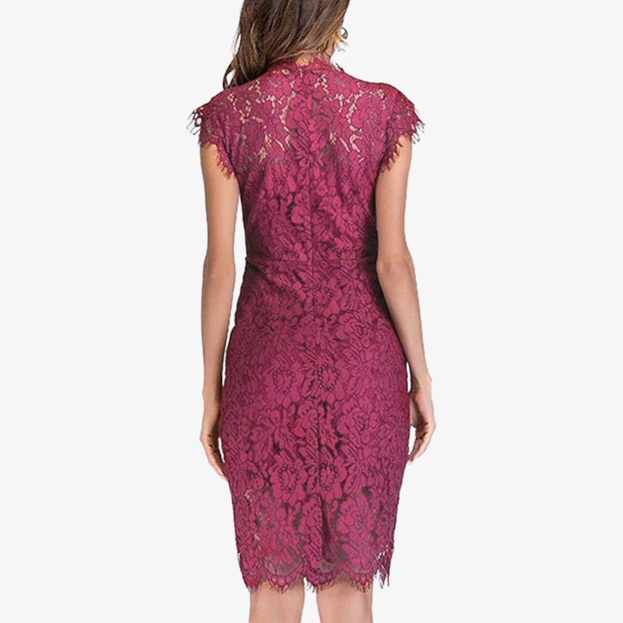 Upgrade your wardrobe with this beautiful Floral Lace Cocktail Dress. We understand that finding the perfect outfit on a budget can feel difficult. Therefore, we offer high-quality fashion at prices you will love. This cranberry piece features an intricate floral lace pattern. The short sleeves and formed fit ensure you stay comfortable all day long. Furthermore, the high waist and high split ruffle hem design create a simple yet classy look. Whether you’re attending a summer wedding, Sunday brunch, or a dinner party, this dress provides a captivating allure.